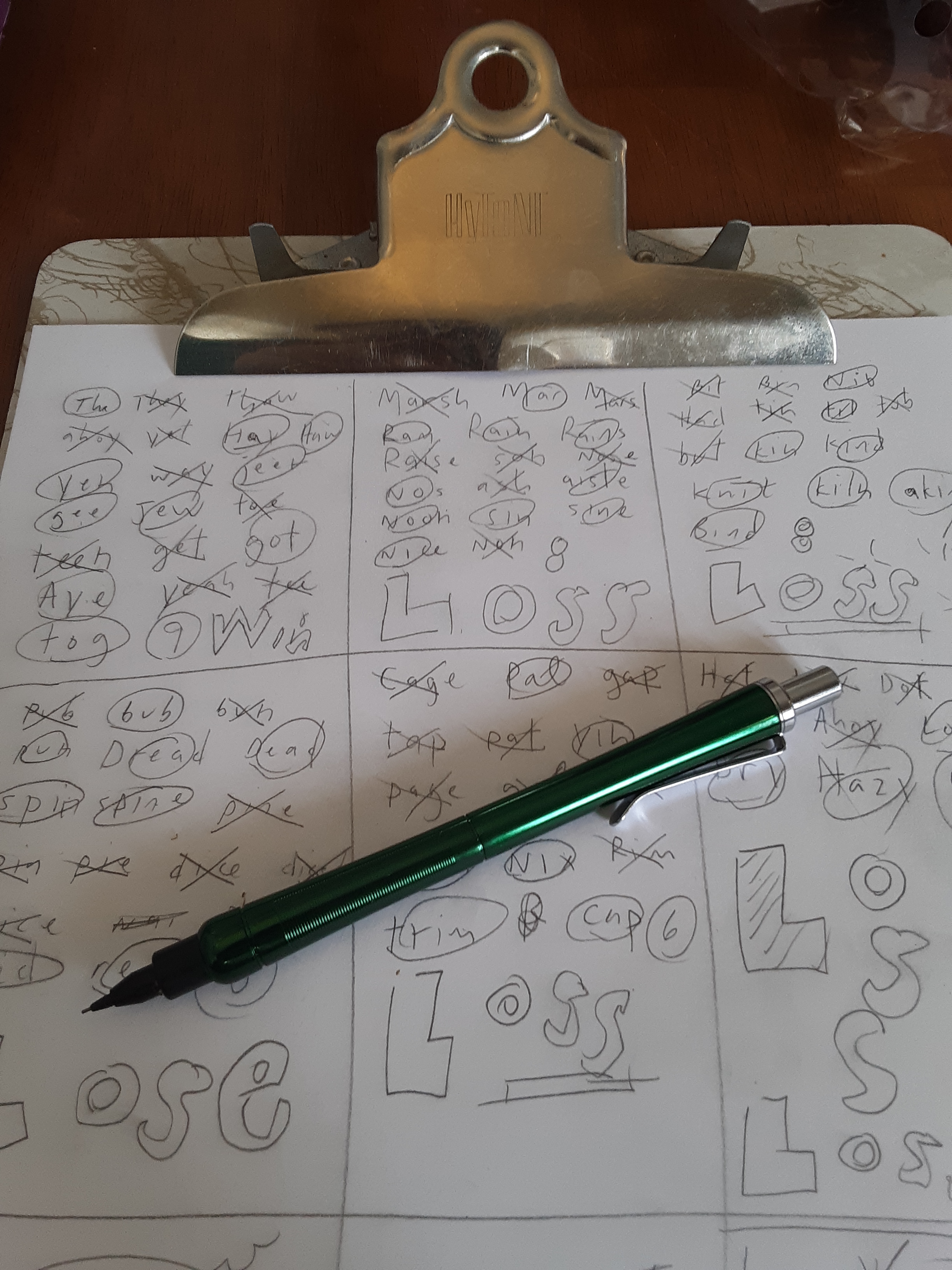 A quick boggle review of the Ohto No Noc mechanical pencil. I played six rounds with the Ohto no-noc – and the no-noc is no good. I liked the similarly styled ballpoint pen, the ohto vi-vic, but this design isn’t working for me in pencil form.